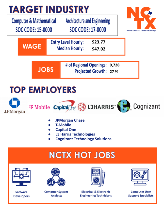 We invite employers and education partners to join us in this mission by offering or participating in worksite or industry tours, classroom presentations, pre-apprenticeships, internships, job shadowing, technical interviews, mentorship, and student competitions. By collaborating with us, you will play a crucial role in shaping the future workforce, providing students with the skills and experiences they need to succeed in high-demand industries. Together, we can build a stronger North Central Texas community and ensure that every student has the opportunity to realize their full potential.